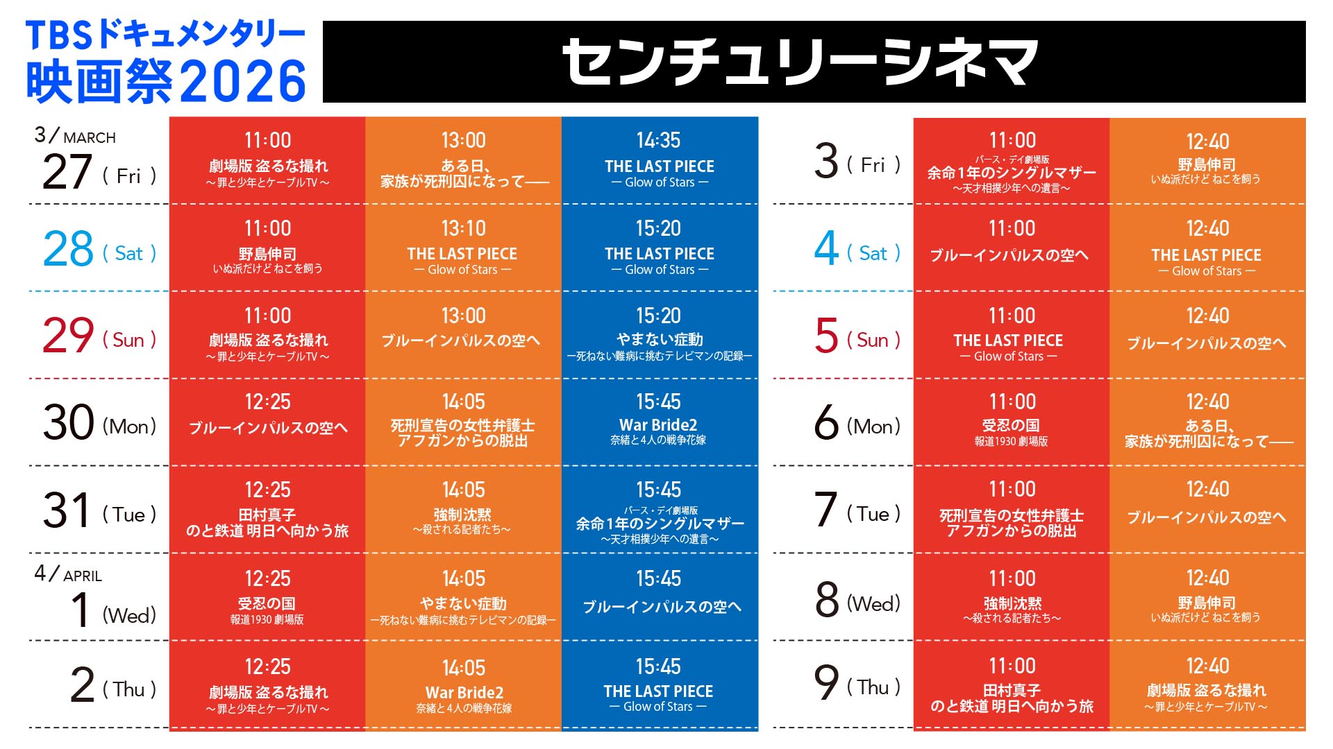 2026年3月27日(金)より上映されるTBSドキュメンタリー映画祭 2026。