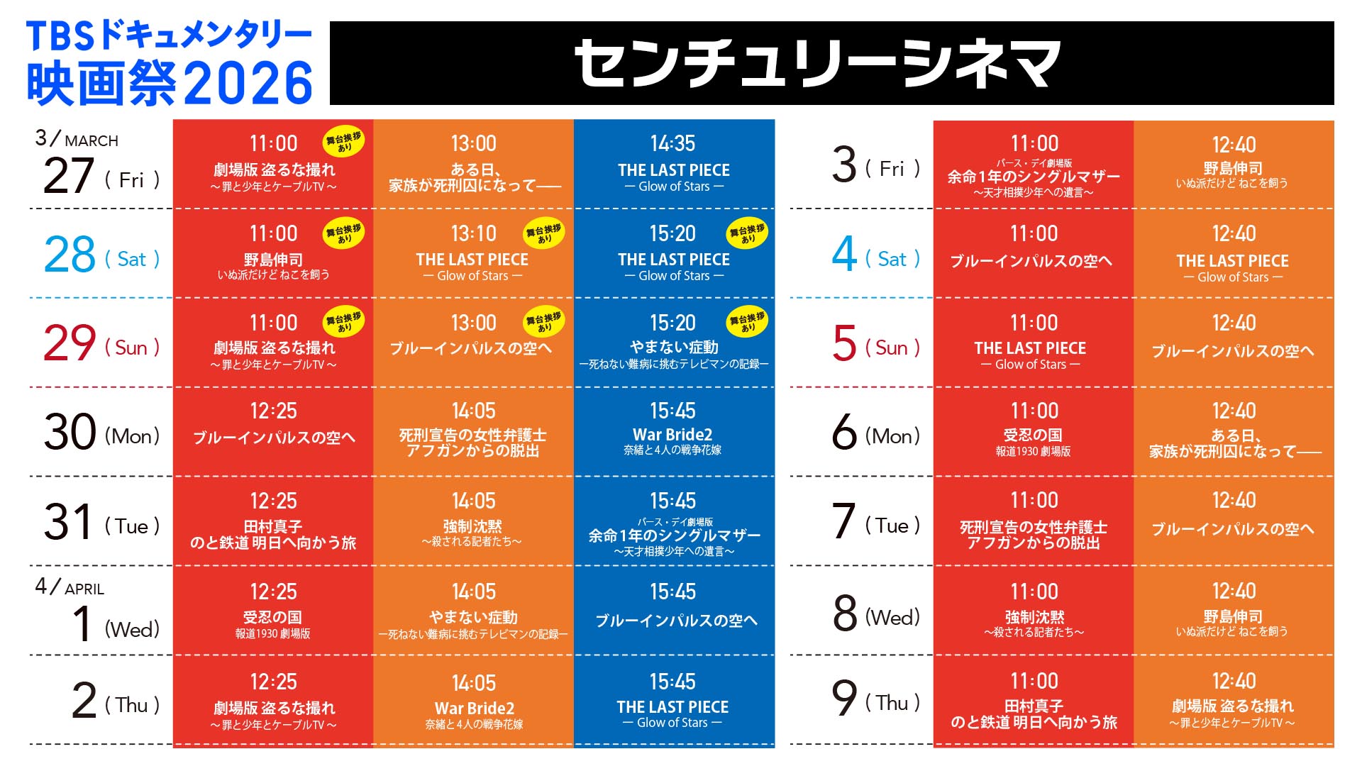 2026年3月27日(金)より上映されるTBSドキュメンタリー映画祭 2026。