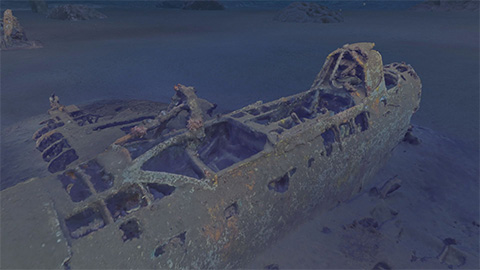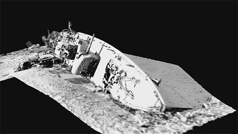 ターゲットは水中の戦争遺物。手は届きにくいものの、風化する一方の陸上の遺物よりも戦時中の形をとどめているからです。沖縄の水深40mの海底に眠る米軍艦エモンズはカメラ片手に潜って撮影。鹿児島湾で新たに発見した零式水上偵察機の撮影には、日進月歩の水中ドローンが威力を発揮しました。
